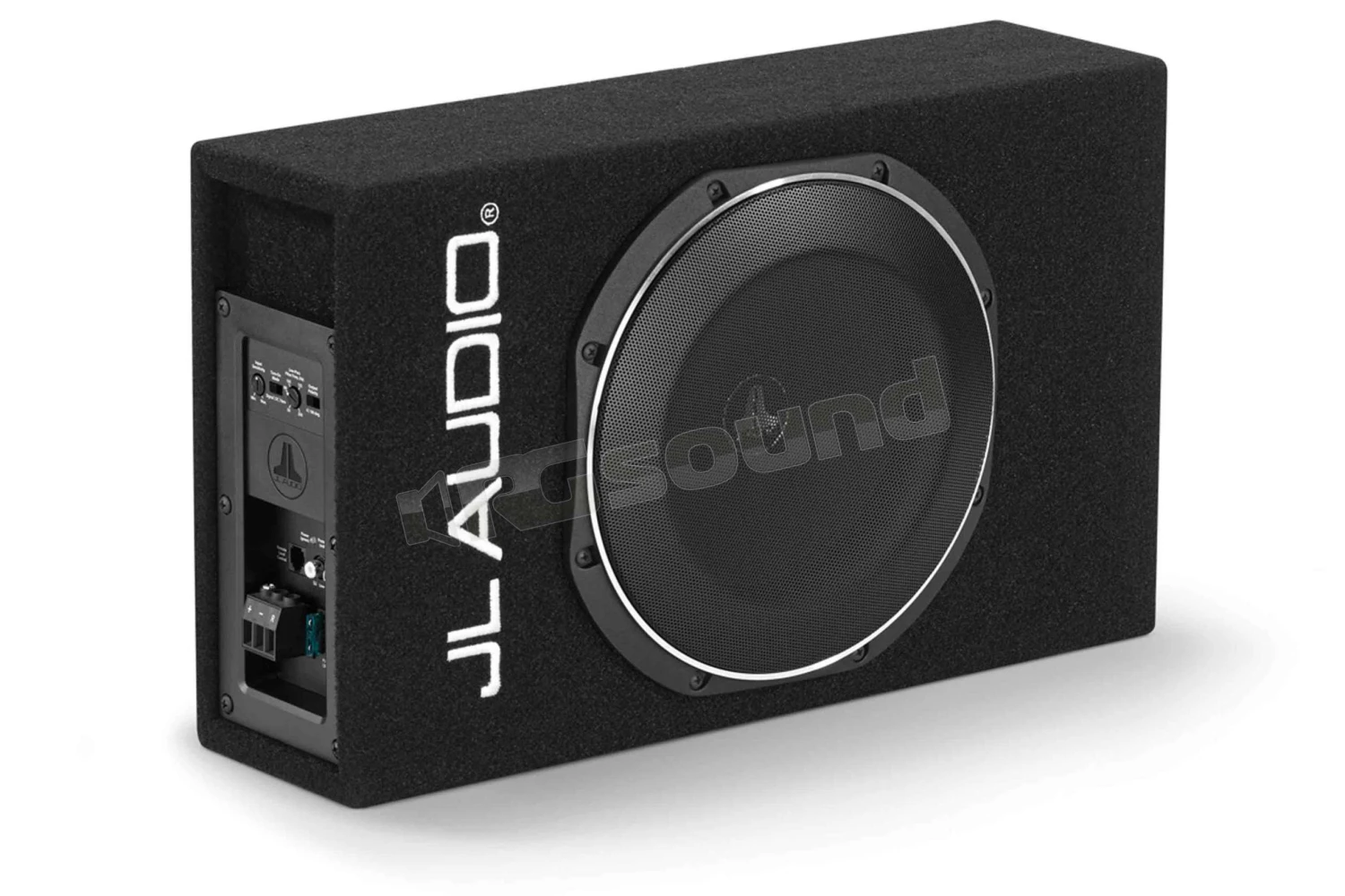 JL Audio ACS110LG-TW1 subwoofer amplificato in cassa chiusa rivestita con moquette nera di alta qualità