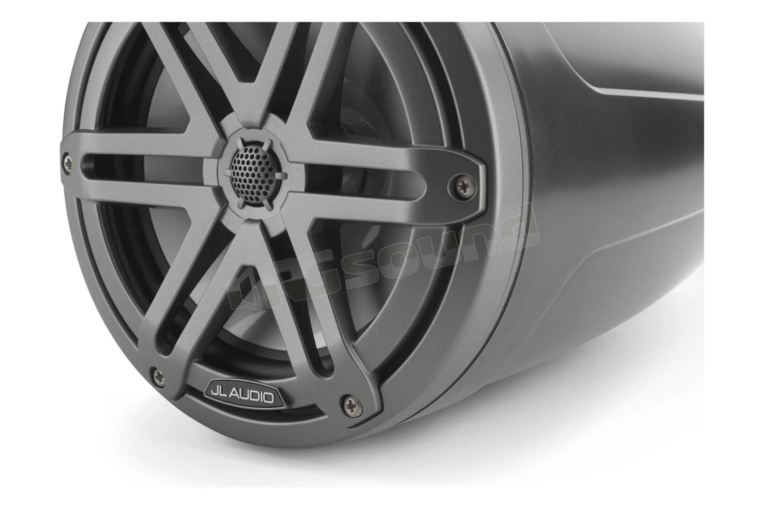 JL Audio M3-770ETXv3-Sb-S-Gm altoparlanti coassiali da 7,7 pollici (196 mm) in box sigillato, rivestimento e griglia sportiva finitura grigio metallizzato.