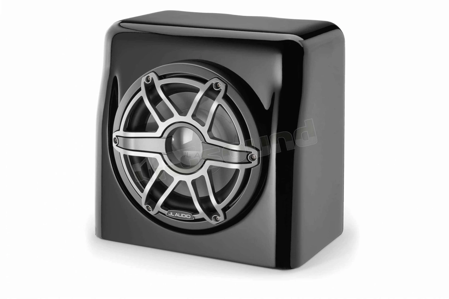 JL Audio M6-10FES-Gb-S-GmTi-4 subwoofer marino da 10″ della serie M6 racchiuso in box sigillato in fibra di vetro, finitura nero lucido con griglia Sport (inserto griglia look titanio).