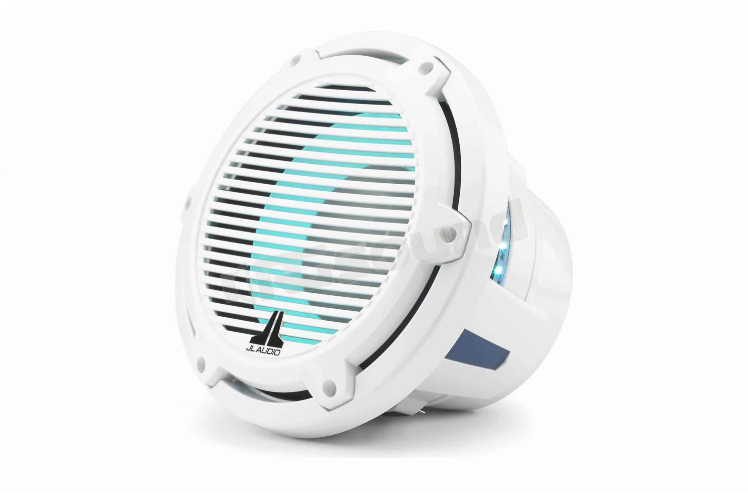 JL Audio M6-10IB-C-GwGw-i-4 subwoofer nautico da 10″ (250 mm) con illuminazione LED, griglia classica in finitura bianca lucida, impedenza 4 Ohm, potenza RMS 125 W.