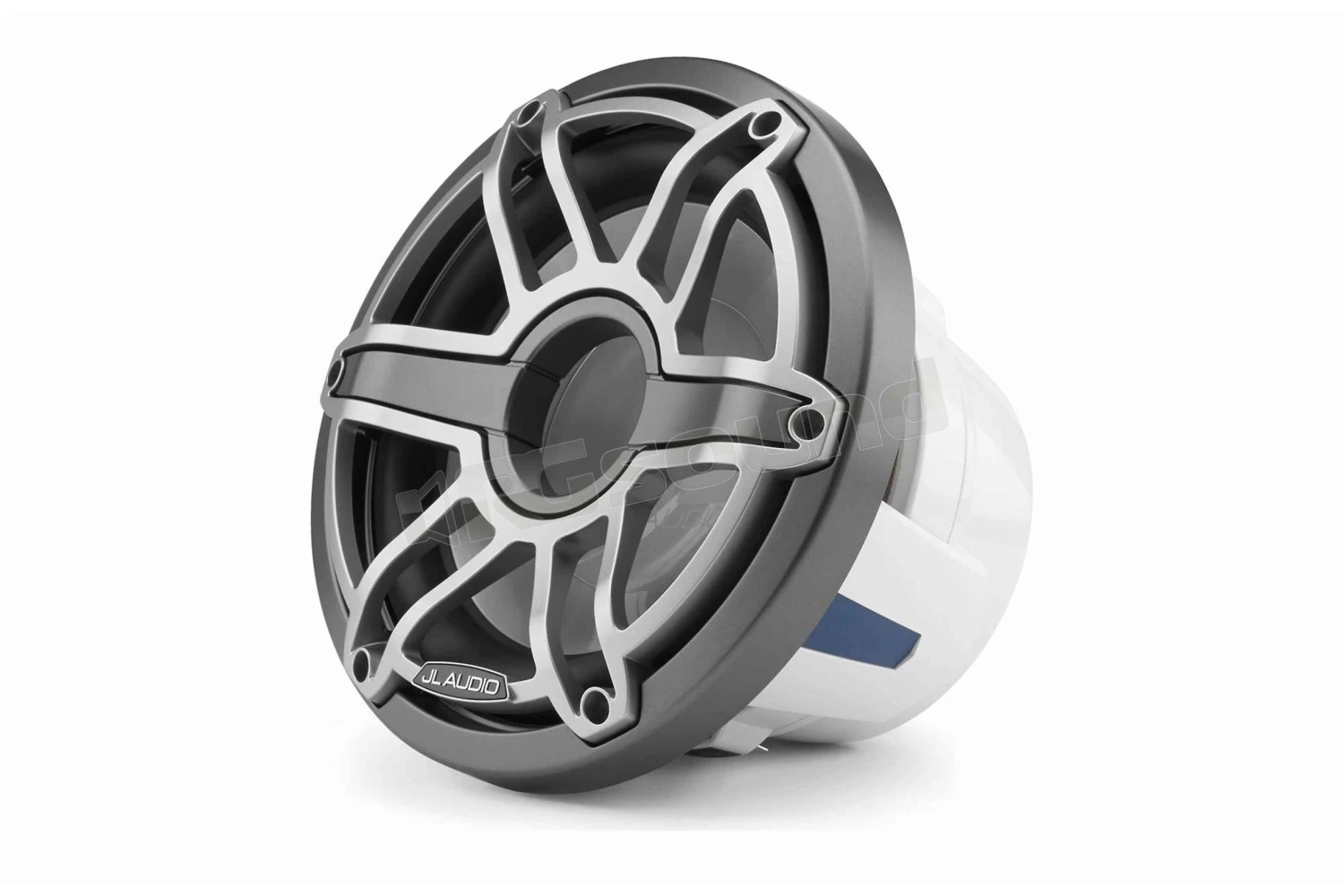JL Audio M6-10IB-S-GmTi-4 subwoofer marino da 25cm (10″) serie M6, per installazione ad aria infinita. Ha una potenza reale di 250 W a 4 Ohm e la griglia soprtiva con finitura titanio inclusa nella confezione.