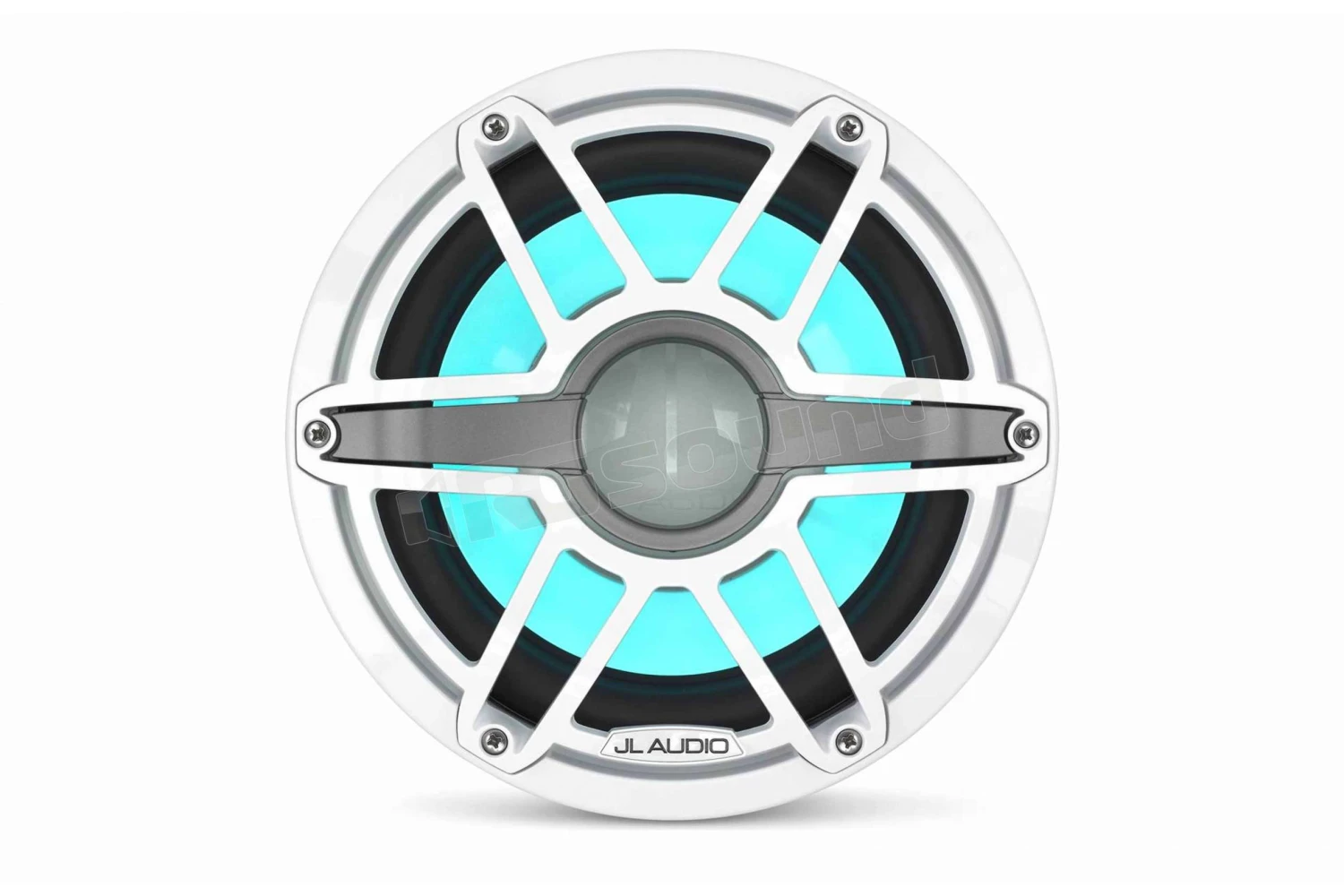 JL Audio M6-10IB-S-GwGw-i-4 subwoofer nautico da 10″ (250 mm) con illuminazione LED, griglia sportiva in finitura bianca lucida, impedenza 4 Ohm, potenza RMS 125 W