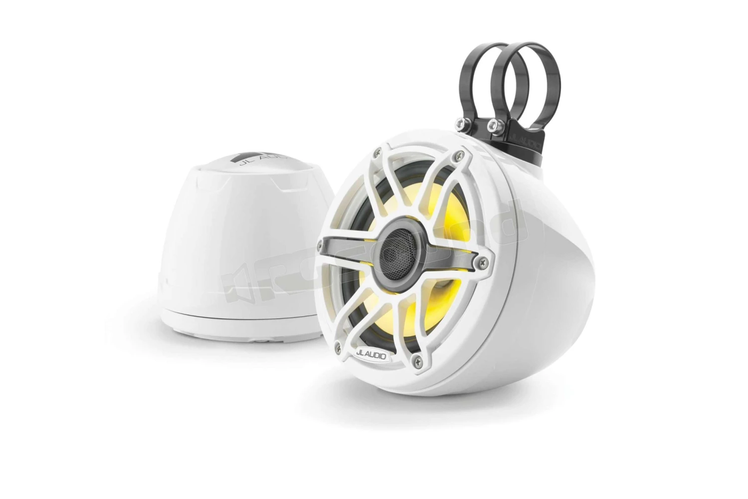 JL Audio M6-650VEX-Gw-S-GwGw-i coppia di altoparlanti coassiali M6 da 6,5 pollici, dedicati perla nautica, con illuminazione a LED Transflective (75 W, 4 Ω). Custodia, anello di rivestimento e griglia sportiva con finitura bianco lucido.