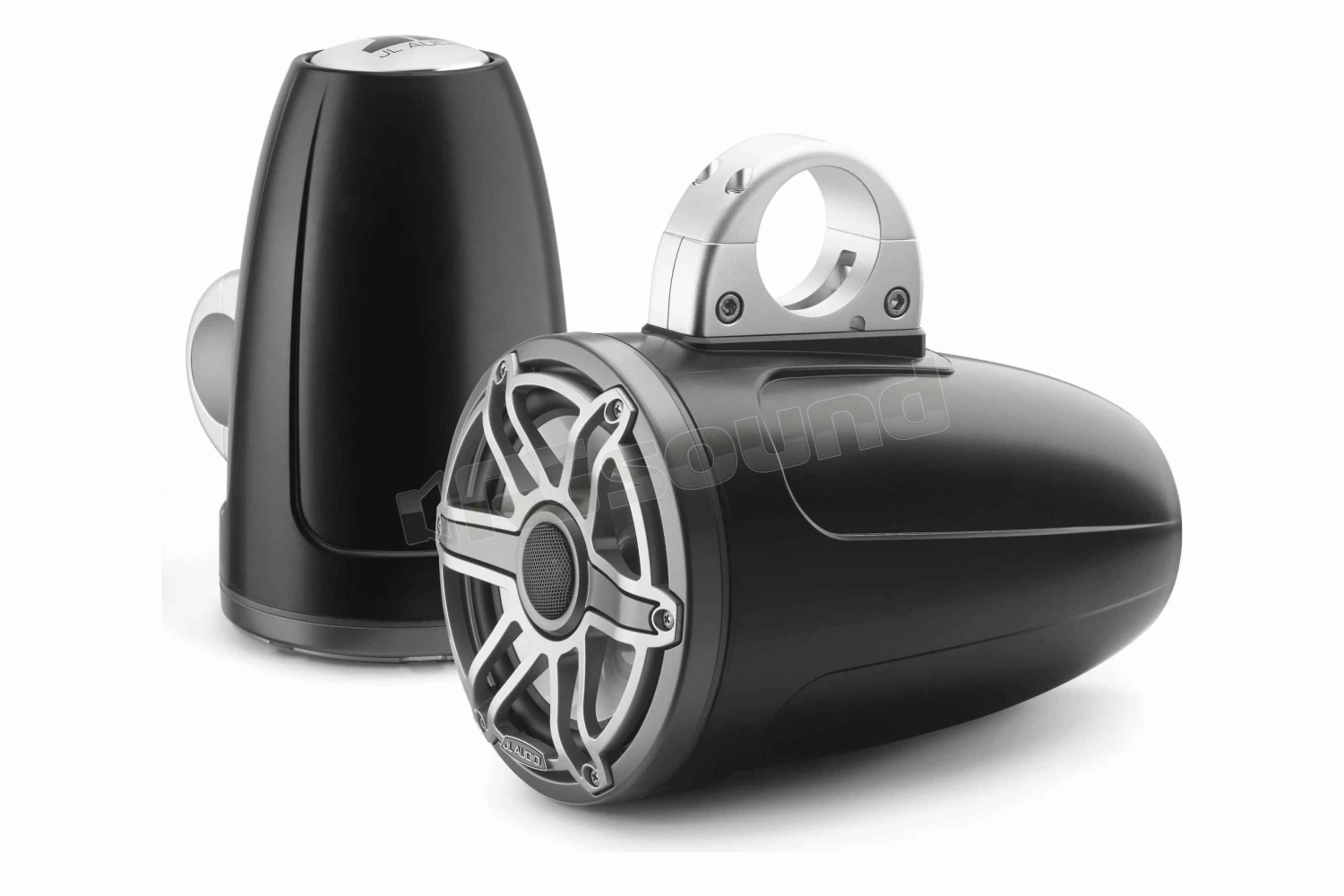 JL Audio M6-770ETXv3-Sb-S-GmTi coppia di altoparlanti coassiali 196 mm a torre, racchiusi in box finitura nero satinato, con griglia sportiva look titanio.