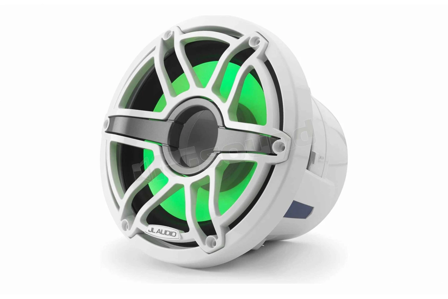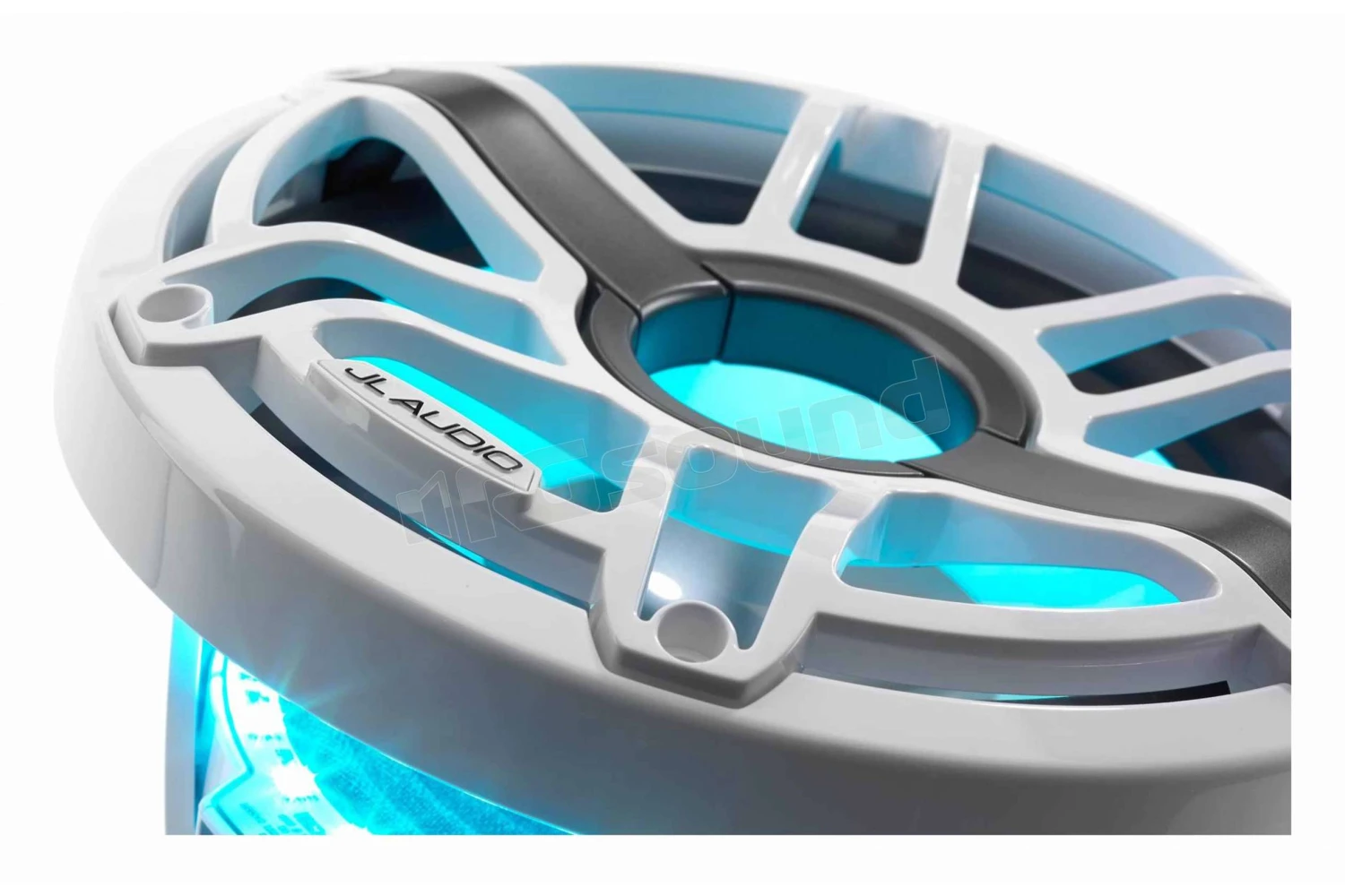 JL Audio M6-8IB-S-GwGw-i-4 subwoofer nautico 20cm con illuminazione a LED e griglia sportiva bianca. Impedenza 4 Ohm, potenza nominale 125 W, massima 200W.