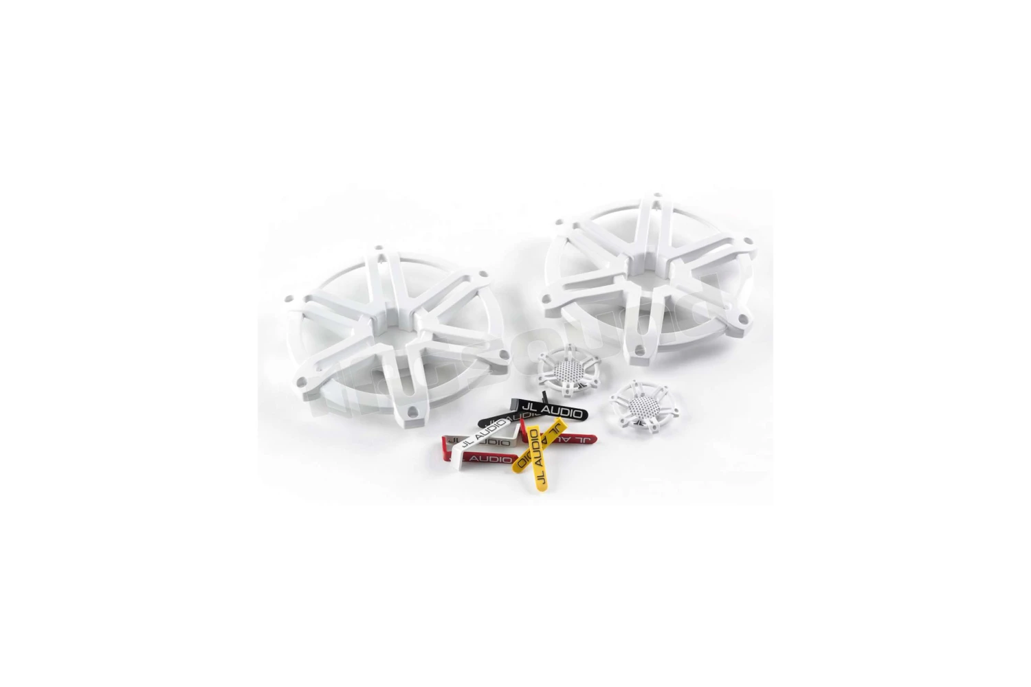 JL Audio M770-SG-WH KIT comprelnde coppia di griglie sportive per woofer Serie M da 200mm + coppia di griglie sportive per tweeter + 8 targhe JL AUDIO di quattro diverse colorazioni.