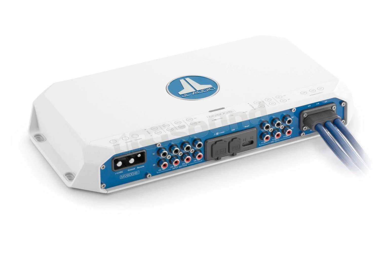 JL Audio MV600/6i amplificatore marino full range in classe D a 6 canali con DSP integrato, 100 W x 6 @ 2 Ω / 75 W x 6 @ 4 Ω – 14,4 V