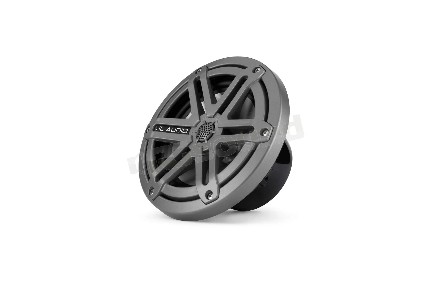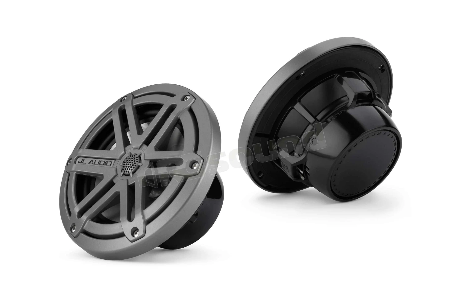 JL audio Serie MX coppia di coassiali marini 165 mm (6.5″) MX650-CCX-SG-TLD-B finitura titanio, modello griglia sportivo con illuminazione LED blu. Tweeter 19 mm con magnete Neodimio e cupola in seta. Potenza 60W a 4Ohm.