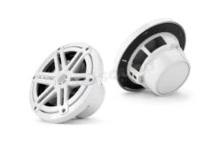JL audio Serie MX coppia di coassiali marini 165 mm (6.5″) MX650-CCX-SG-WLD-B finitura bianca, modello griglia sportivo con illuminazione LED blu. Tweeter 19 mm con magnete Neodimio e cupola in seta. Potenza 60W a 4Ohm.