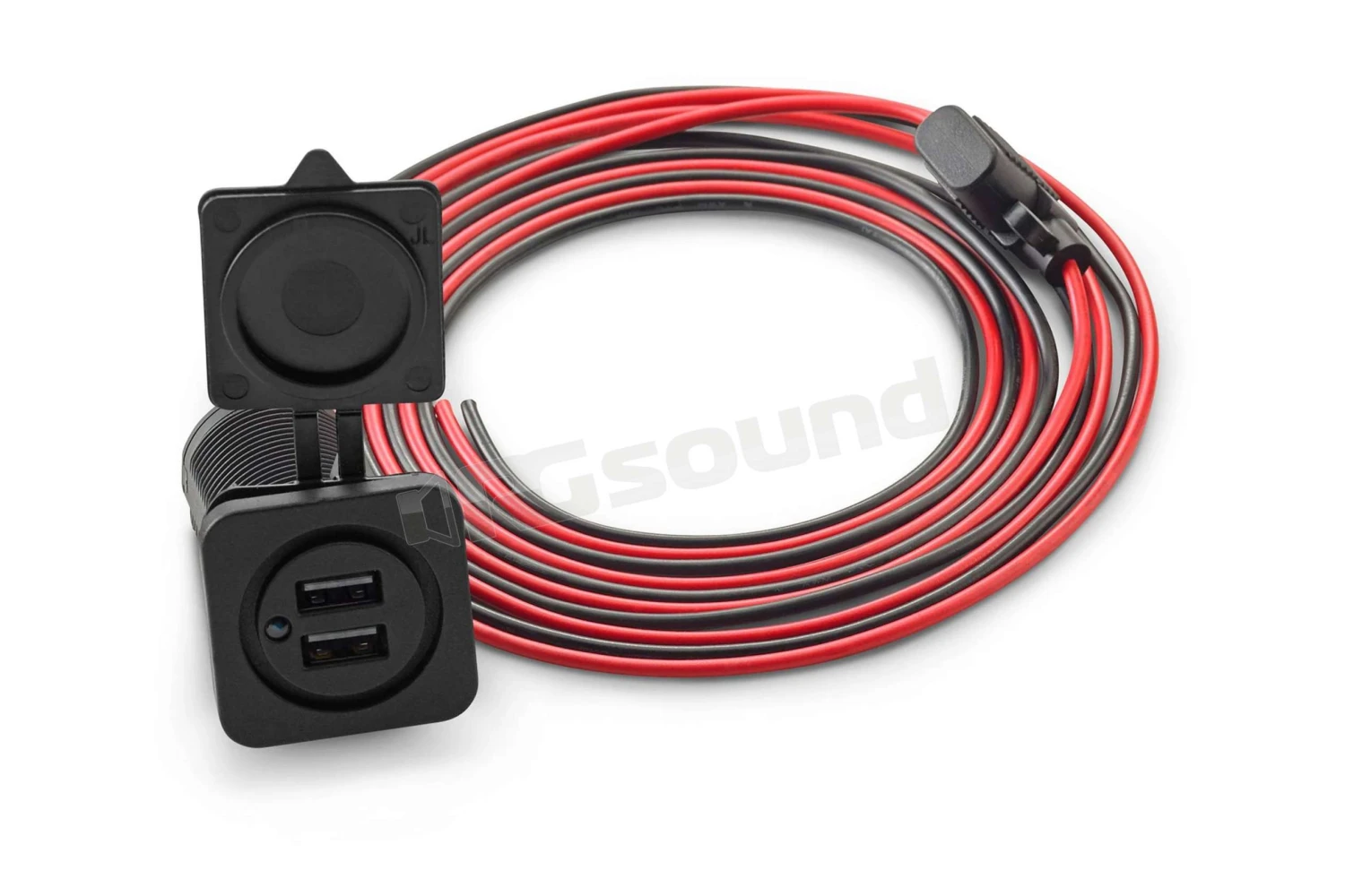 JL Audio XMD-USBCHG/2X-PNL doppia presa di ricarica USB per montaggio a pannello, lunghezza cavo 6 metri.
